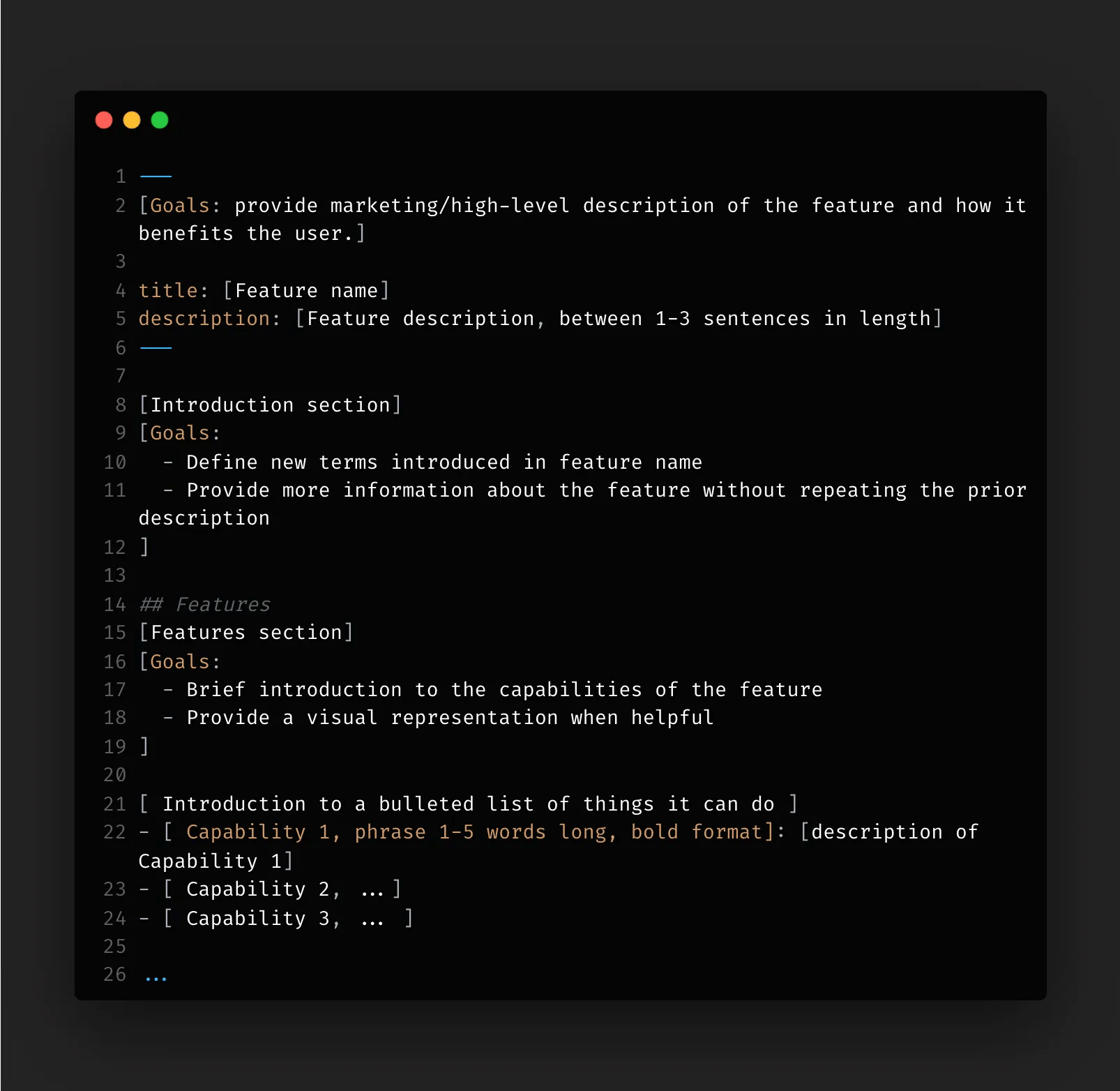 Use brief descriptions and be sure to list common use cases. Avoid marketing speak: if users are already reading your docs, the goal is to help them achieve their goal.